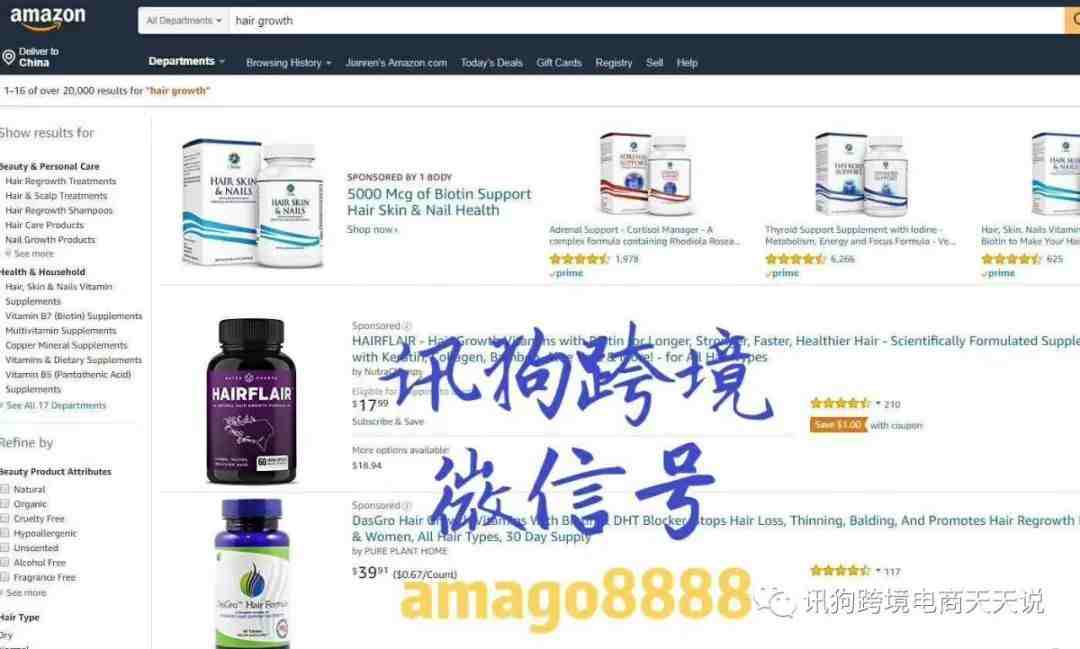 因此功能性防脱发产品在各个跨境电商平台也是爆款商品。