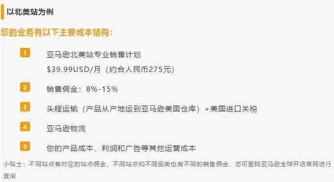 此外,亚马逊还有北美、欧洲、日本、澳洲,印度几大站点,每个站点不同,费用的收取也不同。