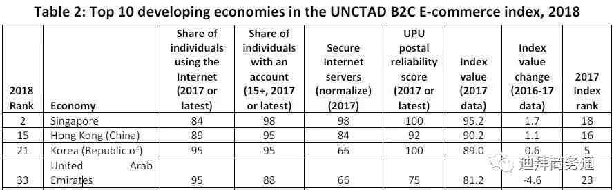 (图片来源:UNCTAD B2C ECOMMERCE INDEX 2018)