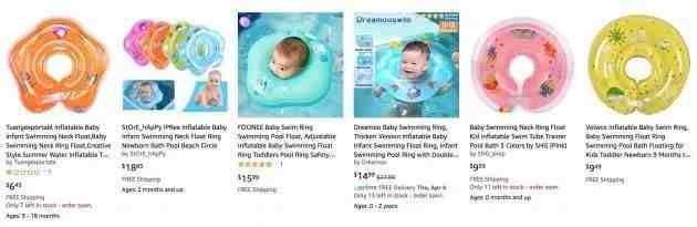 因此,Chiu对亚马逊将儿童充气颈部漂浮物放在危险物品清单上的做法非常满意。然而,截止4月1日,在亚马逊上搜索“inflatable children's neck floats ”仍然可以看到至少六种这样的产品。其中一样产品售价仅为6.45美元;另一个产品的图像显然盗用竞争对手的listing。在被外媒询问为什么销售违禁品后,所有的产品listing在一天之内就消失了。