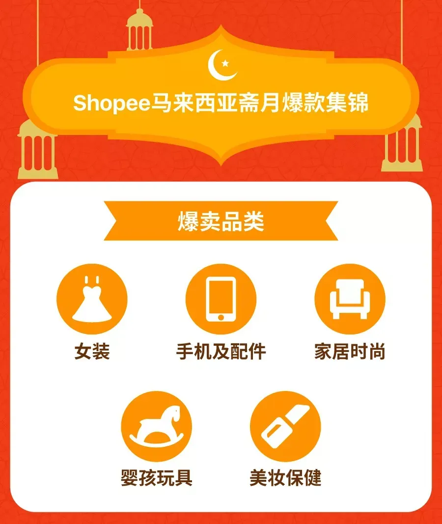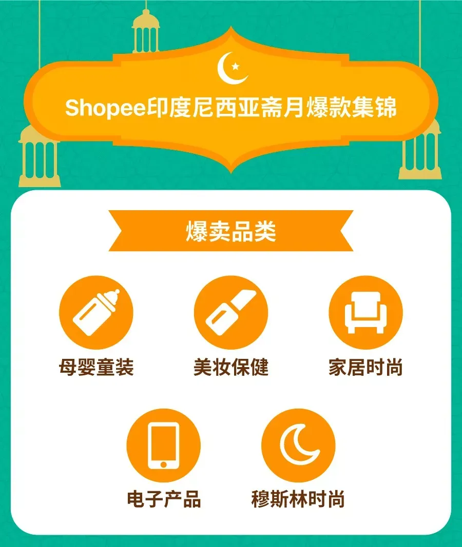 Shopee印度尼西亚和马来西亚市场最盛大的电商节日斋月大促即将来袭!斋月期间,穆斯林会返乡与家人团聚,置办新衣、装饰屋子、走亲访友,期间产生大量消费需求,其中时尚品类销量涨幅最高。印度尼西亚和马来西亚的企业通常会在斋月前为员工发放年度奖金,消费者的购买力进一步提升,推动电商销售额激增。