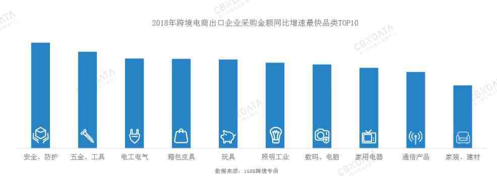 (2018年跨境电商出口企业采购金额增速最快品类TOP10)
