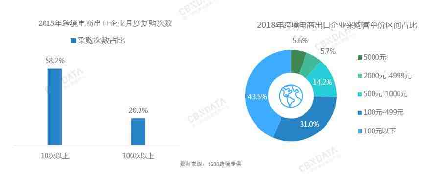 (2018年跨境电商出口企业采购月度复购数据及采购客单价区间数据)