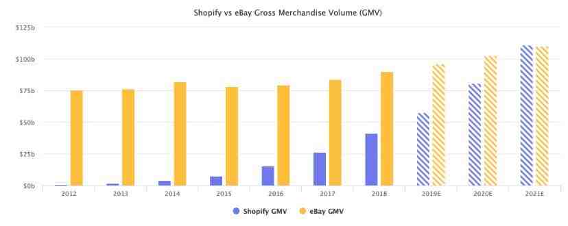 在经过了粗放式的发展之后,自2018年,随着平台竞争加剧,独立站发展优势愈加明显。相关数据显示,2018年Shopify的销售量已经是eBay的45%。目前,Shopify上有超过820,000个商家(不计入非活跃商店),其中越来越多的是直接面向消费者的品牌。在2021年,Shopify的全球销量将超过eBay。