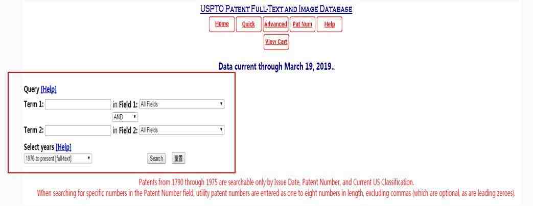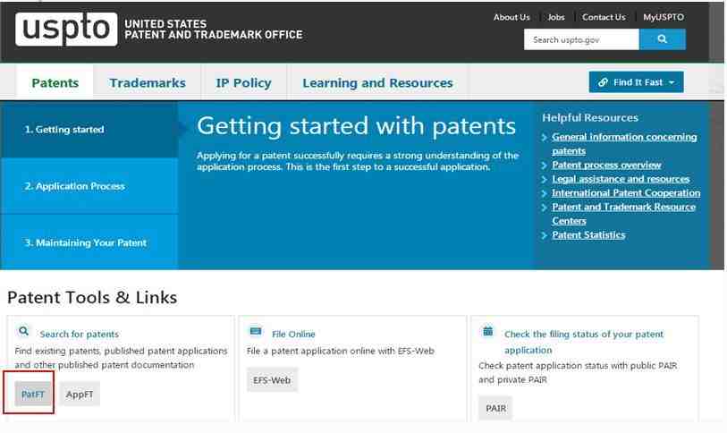 ①打开uspto,根据需要点击左下角的PatFT或AppFT进行相关美国专利检索