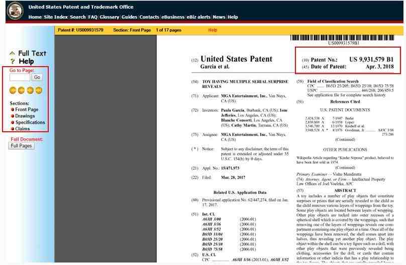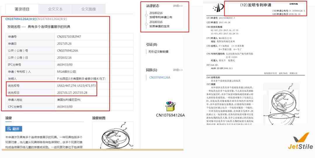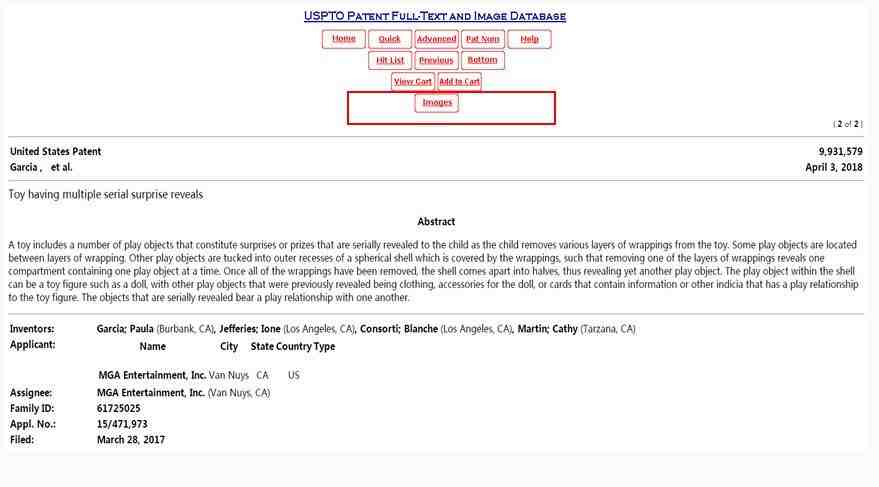 最快的方式是通过产品信息查找权利人(即申请人或专利权人)。代理人通过L.O.LSURPRISE这个商标,查到该精灵球的申请人是MGA娱乐公司后,又该如何查询产品的相关专利呢?