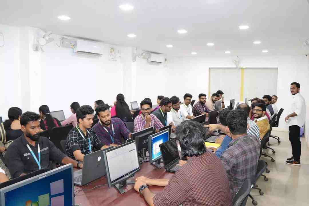 在位于 Kumaramputhur 地区的 Infolks 办公室内,Kolasseri 与他的团队成员们正在交流互动 | 图片来源:FactorDaily