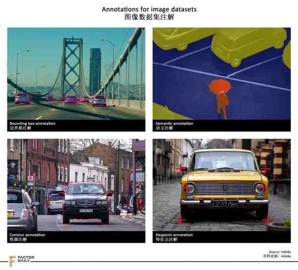 打个比方,假如你想要用车载摄像头拍摄的图像训练一种算法,让其读懂路标,数据注解员或标注员就会利用注解工具仔细审查一遍图像数据集,标记或圈出不同的路标,并将这些标记好的数据提供给人工智能算法进行学习。当下次该算法在实际行驶中遇到某个区域内的路标时,便能加以识别。一个算法经过越多数据的训练,它的精确度就越高。