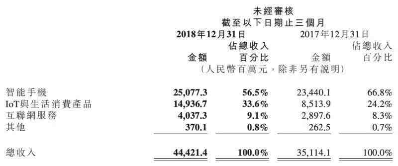 小米的海外业务有三大支柱——硬件、零售和互联网增值服务,而最后一个支柱在印度尚未很好的完成变现。Jain 称,2018 年小米在全球的硬件销售利润率不到 1%,估计硬件的利润率永远不会超过 5%。据小米 2018 财报显示,智能手机的毛利率也从去年同期的 7.3% 下降至 6.1%,而 Q4 互联网业务同比增长 61.2% 至 160 亿元。而此前小米第四次架构调整,加强出海业务成立互联网五部也预示了这一战略方向。