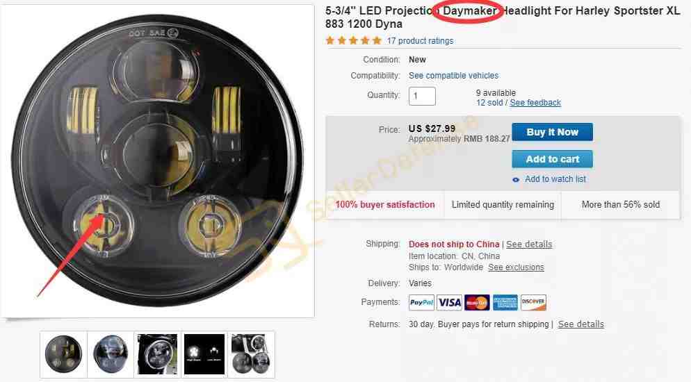 我们在3/11号写了一篇帖子:疯了!哈雷还有个DAYMAKER 商标??!GBC正在疯狂取证中 ,GBC从2月份开始已经在疯狂钓鱼取证标题含 Daymaker 的摩托车灯产品,因为在售卖的卖家非常多,SellerDefense团队感觉事态非常严重,以下是一个被GBC钓鱼的产品截图: