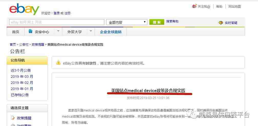 卖家在刊登medical device相关物品之前,应当确首先保确保该物品遵循美国当地法规和要求,同时确保符合美国站点medical政策及合规实践。不合规的刊登可能会被移除,并且卖家的eBay账号将可能会受到一系列限制,包括但不限于账号销售限制、账号冻结等。