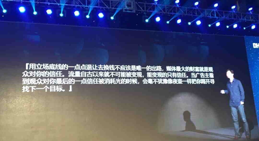 用立场底线的一点点退让去换钱不应该是唯一的出路,媒体最大的采访是观众对的你信任。流量自古以来就不可能被变现,能变现的是只有信任。当广告主看到观众对你最后一点信任被消耗光的时候,会毫不犹豫像夜壶一样把你踢开寻找下一个目标。