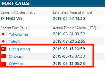 目前这三艘船舶均停留在横滨锚地: