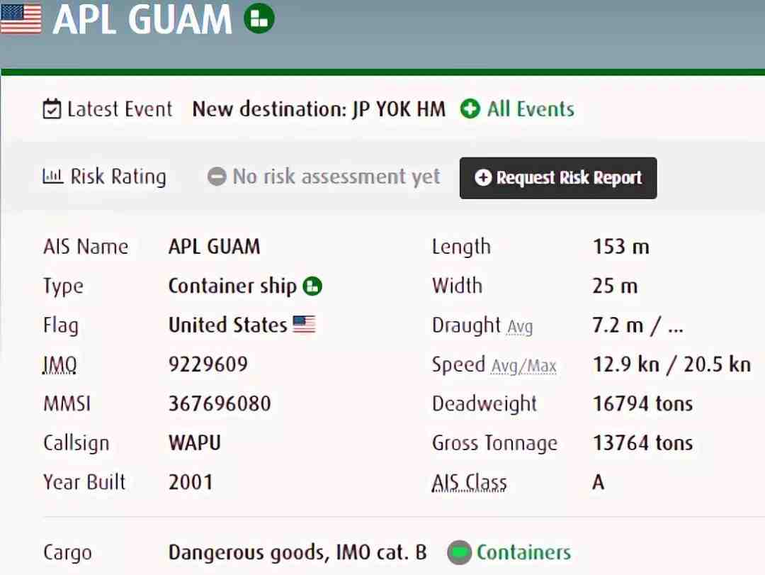 “APL GUAM”轮最近挂靠港