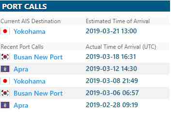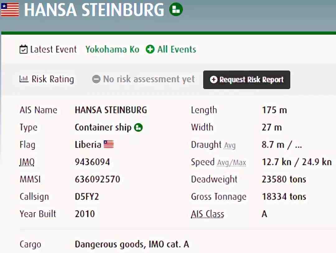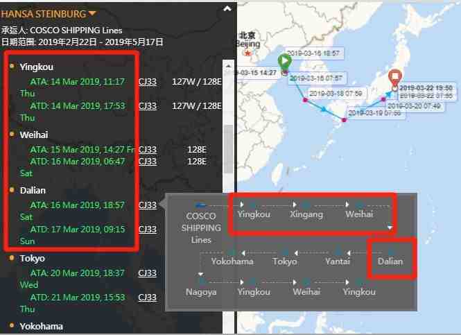 来自大船期数据显示,“HANSA STEINBURG ”号集装箱船只涉及中远海(cosco shipping lines)1家承运人。曾挂靠营口港、天津新港、威海、和大连港。