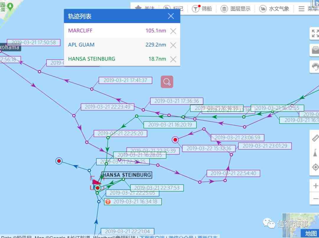 当地时间3月21日晚上23时左右,日本横滨港Nonmoku码头锚地,三艘集装箱船舶发生连环碰撞,其中两艘船分别是"MARCLIFF"号和"HANSA STEINBURG"号曾在3月中旬挂靠多个中国港口,船期恐延误.曾停靠我国多个港口.