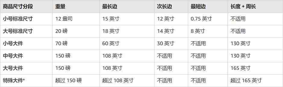 那你可能要问,我的商品是属于标准件还是大件呢?您可以参照以下表格: