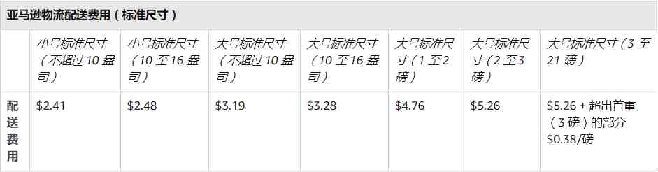FBA的基本收费是仓储费+配送费。具体如何收取的呢?我们以美国站为例来看一下。