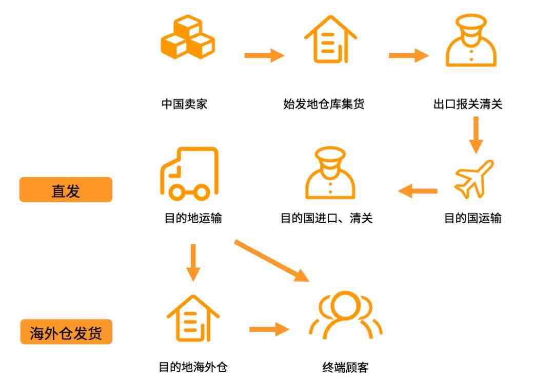 目前,亚马逊的跨境物流方式有两种:自配送和使用FBA配送。我们可以通过以下两张图来了解下两种物流方式的不同: