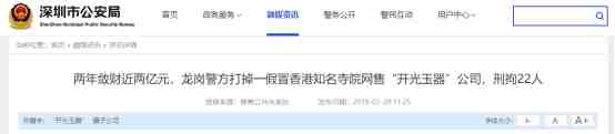据悉,2019年初,龙岗警方收到举报:位于龙岗平湖的深圳市某光信息科技有限公司利用网站,打着“玉石商人还愿”“大师加持开光”的名义实施诈骗活动。经侦查,3月18日,龙岗警方分别在平湖、宝安区、东莞凤岗区等地开展抓捕行动。此次行动共抓获犯罪嫌疑人128名,缴获涉案物品一批,初步统计涉案金额近2亿元。