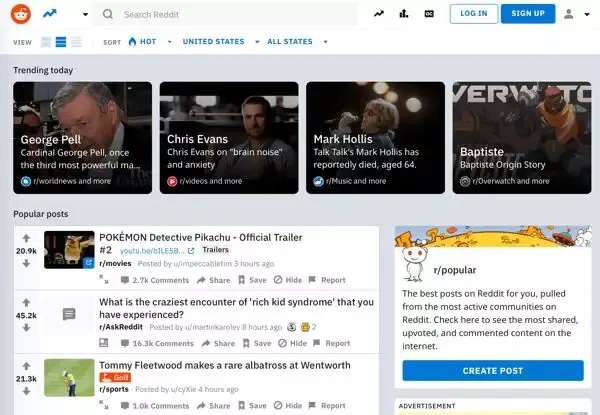 由于该网站可以对他人帖子发表意见,所以一打开Reddit的主页给人的感觉就像是看到了全网的热点集中地。如果你已经注册Reddit账号,你的首页会根据你关注的社区和话题推送帖子给你。就像微博的帖子一样,用户可以点赞或者踩、发表意见以及回答对方的问题。