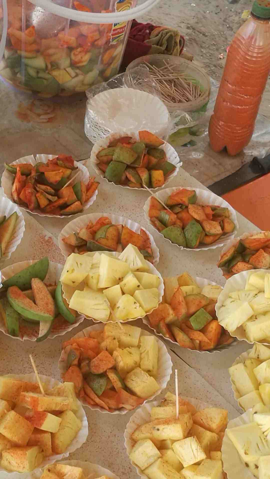 科钦海边除了中国渔网,有很多印度人卖的小吃,青芒,菠萝泡在盐水里,要吃就取出切块撒上辣椒粉吃,酸辣咸鲜,这种吃法和我们大理,昆明街头的泡萝卜,泡木瓜,泡橄榄吃法一模一样,我高度怀疑这也是明朝郑和带来的,郑和是云南昆明一带的人,那么他带领的船队里肯定也有不少云南人亲信,当时一定有不少中国人留下来了。