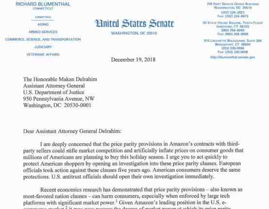 2018年12月19日,Blumenthal写了封信给美国司法部和联邦贸易委员会↓