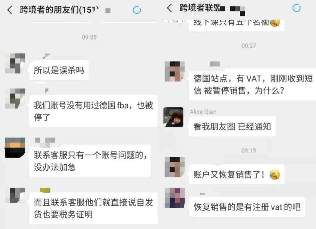 然后就是大批大批的德国站卖家都反映自己账号被封,我们的交流群里面卖家们也在纷纷讨论这个问题