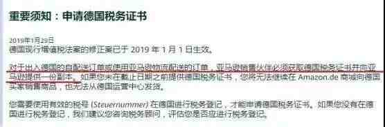 德国税务局要求亚马逊卖家上传税务证书副本一事,原定是2月28日截止。但是因为申请太多处理不过来就有条件地推迟到了4月15日(需要在亚马逊后台上传相关证明才能推迟,点击此处查看详情)