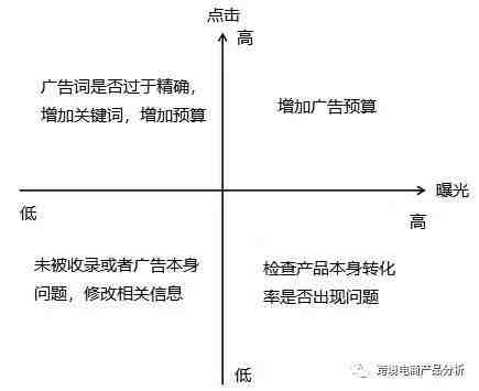 低曝光、高点击 - 从广告组的角度说,是否投放的广告词都过于精确,导致曝光量少。从广告词的角度说,如果不属于很精确的词,应增加竞价和预算,跑出更多数据