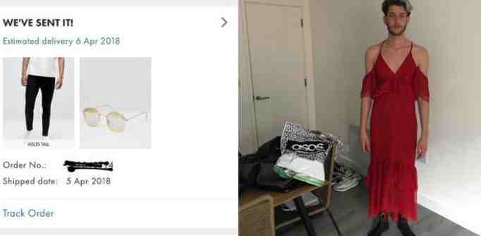 这哥们网上买的裤子衬衫眼镜,结果送到...一条裙子??还是艳红色的??