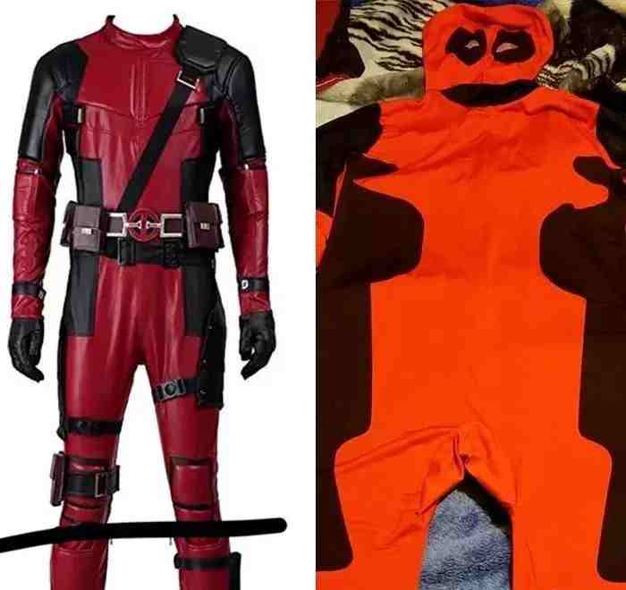 比如这个网友网上买的死侍套装,收到实物的一刻沉默了