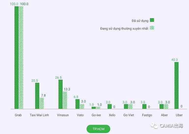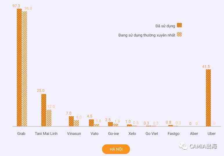 就河内而言,Grab的使用指数有过去的97.3%下降至今的96.8%,使用指数相对低于胡志明市。