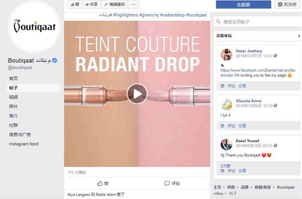 (Boutiqaat的Facebook账号上这个视频仅有115次的播放)