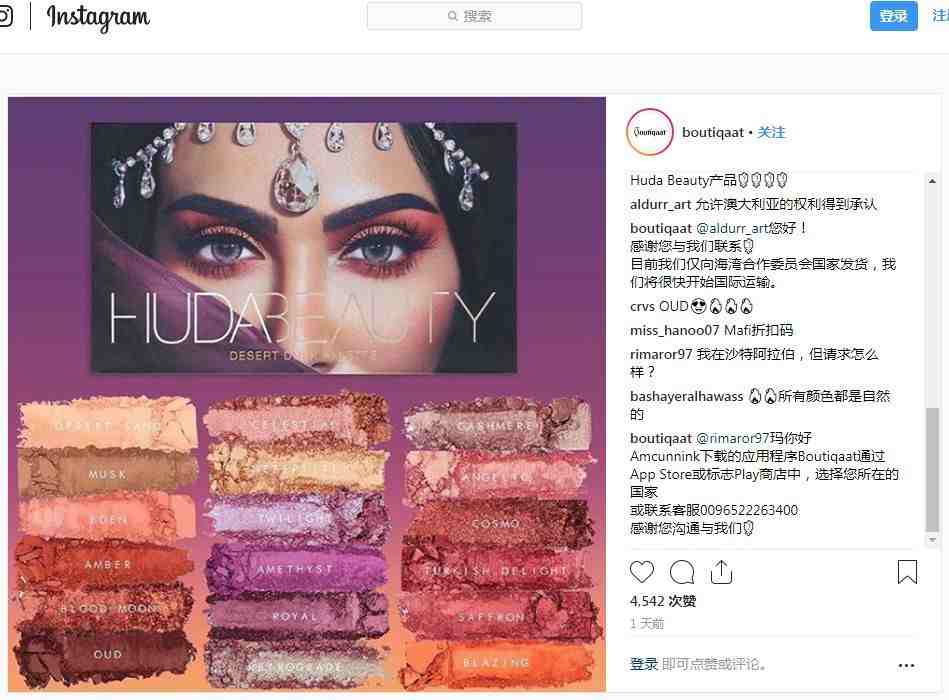 在社交账号上,Boutiqaat主要发布照片和视频为主。实际上,这个购物引导过程比较 原始“。”比如,在Instagram上发布的照片,如果有用户对该产品感兴趣并进行评论,Boutiqaat会引导用户下载其App进行购买。