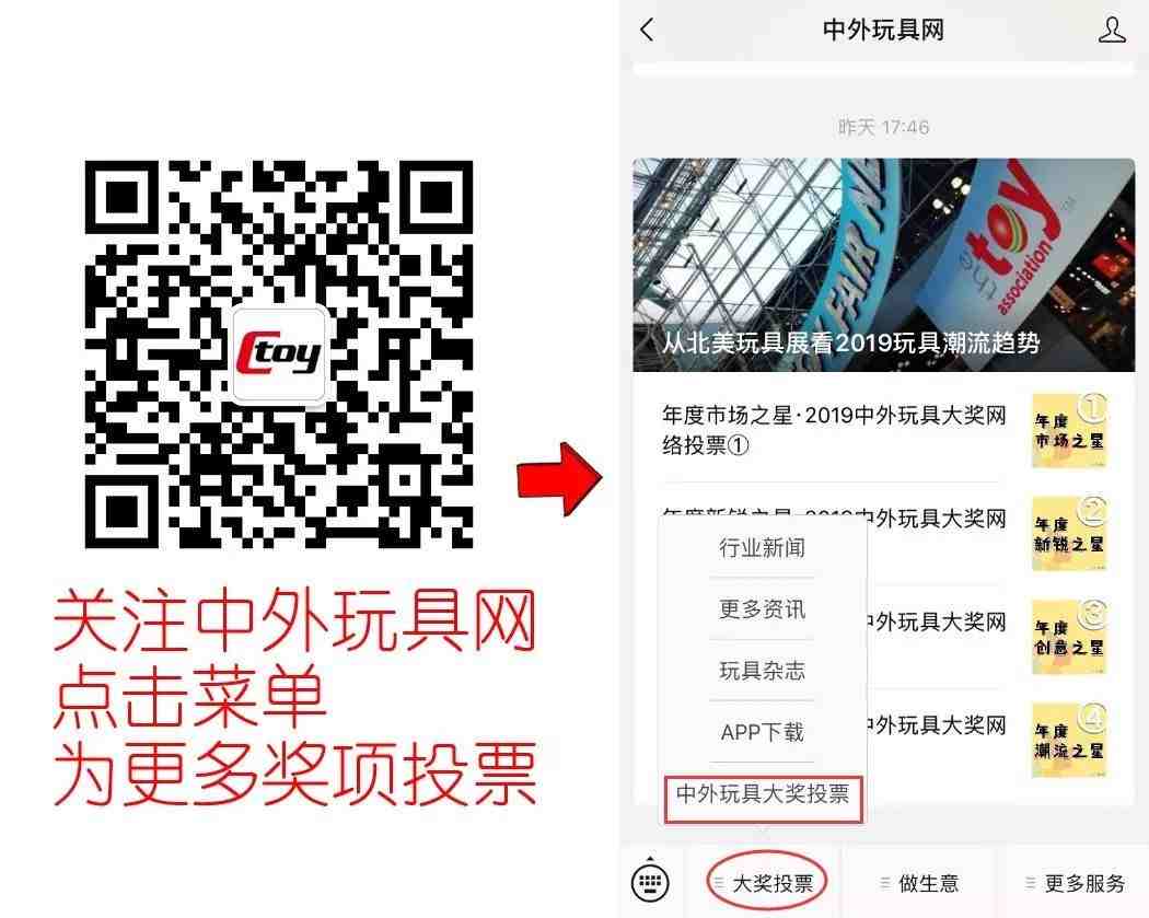 首先非常感谢大家对2019中外玩具大奖(Toy Award)的关注、支持和参与!目前大奖入选产品已正式进入大众评审(网络投票)阶段,中外玩具网微信公众号(ctoy-gdta)为唯一投票平台。此项活动得到了广大群众的热情参与,目前网络投票仍在进行中,将于2月25日截止。