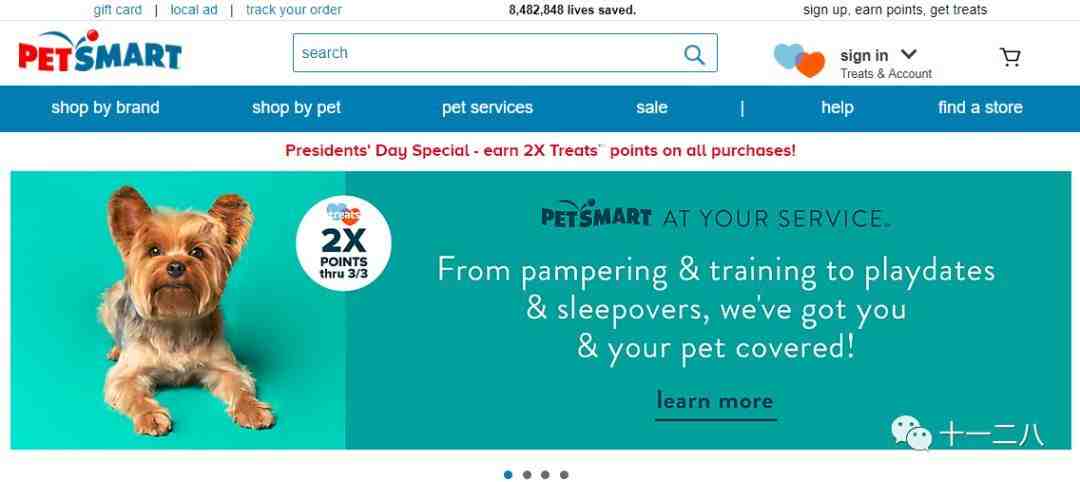 我这边随意选了一个宠物网站,petsmart.com,主要是提供一些宠物相关的服务,包括销售一些相关产品。
