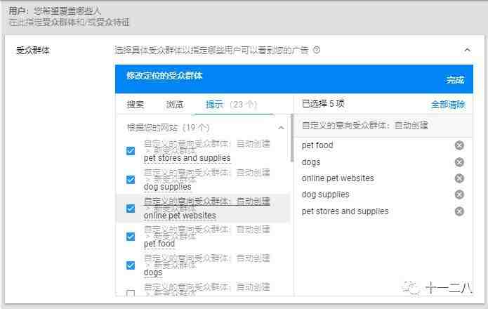 为【广告组】命名后,可以选择【受众群体】,这个比较关键。我们也可以从【Google Keywords】中找寻更多的相关关键字。