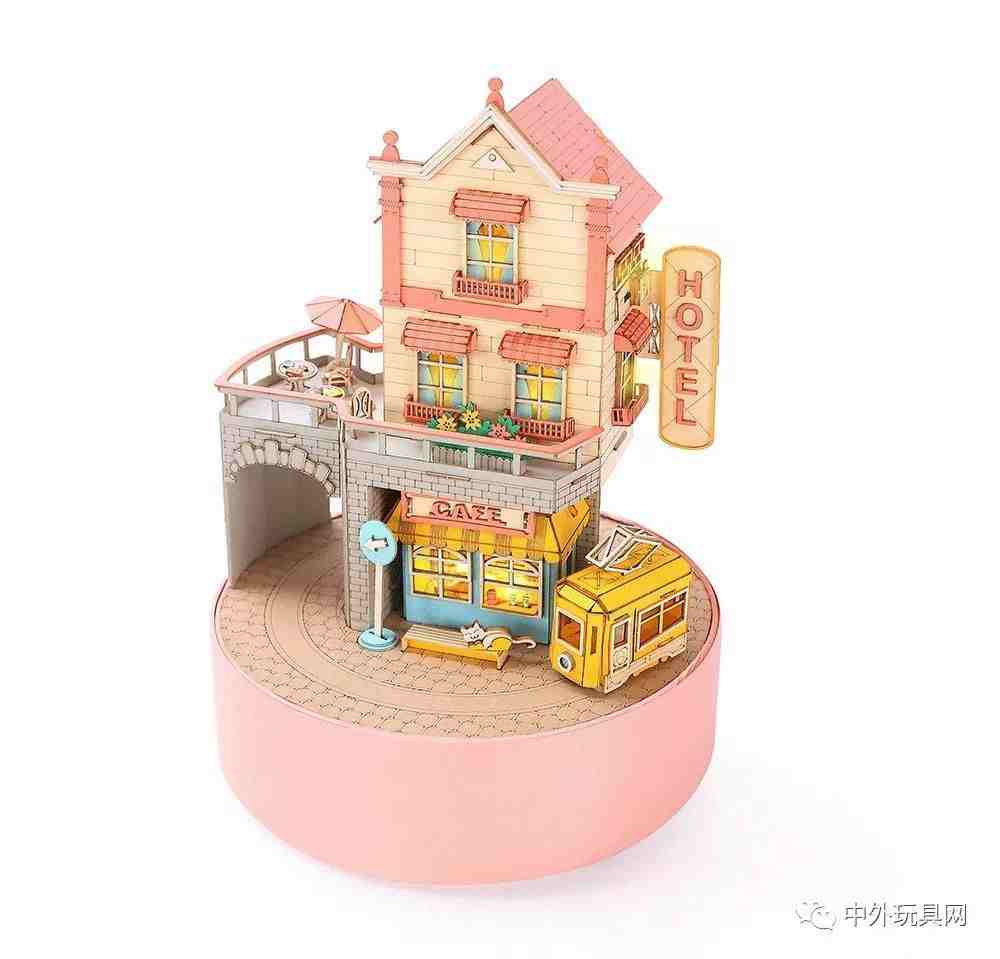 汕头市乐立方玩具实业有限公司出品。无电力的物理动能带跑小物件,品味呈现匠心的小小动态世界。一圈两圈随轻柔八音旋转律动,开启繁忙生活中的视觉休息站。用简单工具即可拼组、黏贴成细致风景。