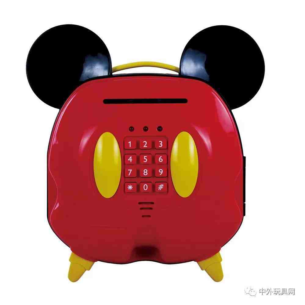 中山市壹百分儿童产品有限公司出品。迪士尼米奇授权,红、黑、黄三色搭配,具备自动卷钱功能,安装了自动感应卷钱装置;具备密码开锁功能;内置11首英文歌,每存入一张纸币即可播放音乐;紫光验钞功能,长按0键3秒打开;大容量设计更可存放好多东西;小拉杆提手设计,方便携带。