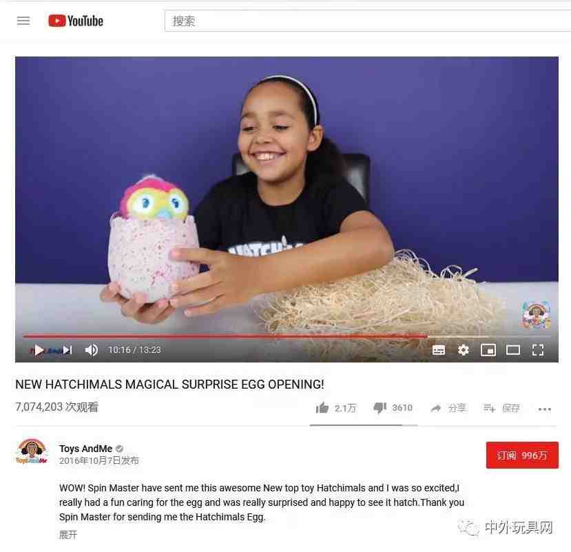 至于由儿童网红捧红产品的例子就更有不少,其中不乏年度热销玩具。仍然以哈驰魔法蛋为例。当时负责宣传推广事宜的Spin Master全球市场营销传播高级总裁Tara Tucker表示:“很多玩具都是所见即所得,而哈驰魔法蛋却不是。甚至初次在各大展会上亮相时,我们都对会孵出什么内容三缄其口,吊足各方胃口。”在“破壳日”,即发售日当天,公司与YouTube儿童网红频道Toys AndMe和FUNel Vision合作,在网络上公布了谜底,受到广泛关注,在短短1个月时间,两位儿童网红就给产品带来了共计1600万次的曝光,产品几乎一上架就被抢购一空。