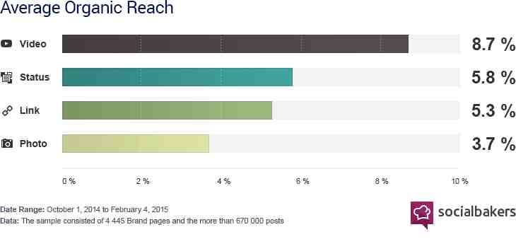 这个应该很多人都知道,Facebook更青睐视频,一般情况下,视频总体的reach和engagement都要优于图片,文字以及链接,这个已经是行业的共识,有数据为证。