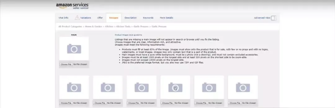 你需要了解亚马逊的产品图片要求。尺寸至少为1000 x 1000 px(正方形),产品本身应填满图片的85%。背景颜色需要是白色,保存为JPEG、TIFF或GIF格式并保存为RGB色彩空间。