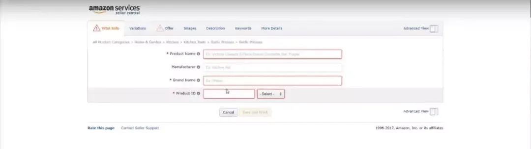 然后,你将被带到一个页面,可以在其中提供产品信息。填写表格,有时亚马逊还会要求你提供GS1、UPC代码。