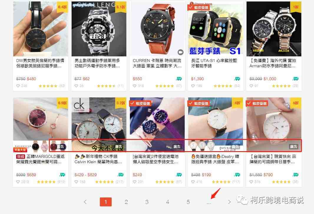 这个流量入口是需要付费的。搜索产品页的最上面与最下面一排都是广告位。