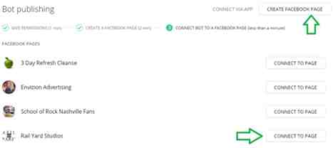选择一个现有的Facebook主页或创建一个新页面,来作为聊天机器人的着陆页