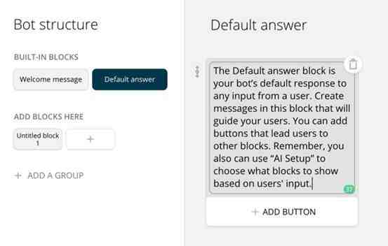 现在单击侧边菜单中的“build”开始构建聊天机器人。