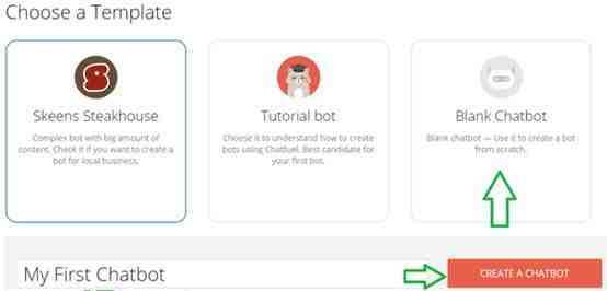 选择一个Chatfuel模板或创建空白的聊天机器人。