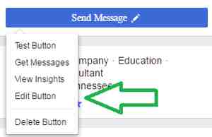 在创建第一个自动聊天机器人并通过测试后,这个聊天机器人就可以正常工作了,请将Facebook专页上的send message按钮调出,这样就可以将专页的访客引导到messenger上了。