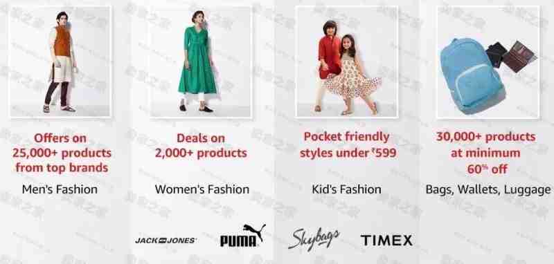 此外,还有3万多种产品将提供至少60%的折扣,例如包包,钱包和行李类的产品。杰克琼斯(Jack and Jones)、彪马(Puma)、Skybags和Timex等品牌也正在与亚马逊印度合作。